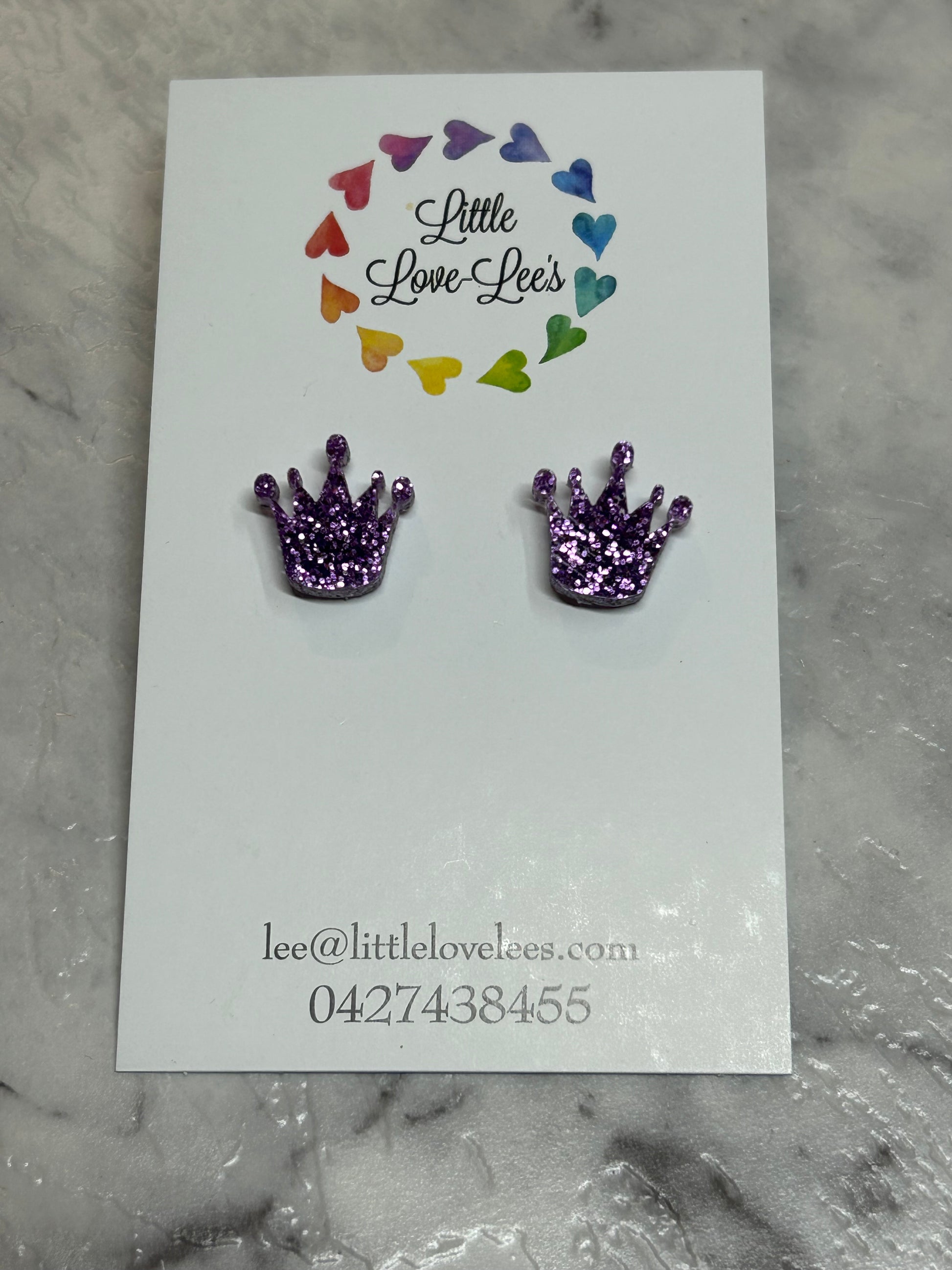 Purple Glitter Crown Earrings